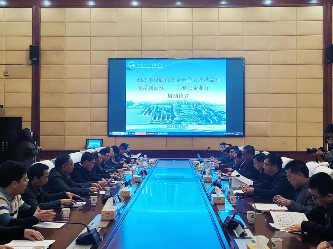 2023年3月8日,2023年婁底市校企合作人才供需對接“專家企業(yè)行”活動啟動儀式在湖南人文科技學院舉行。湖南人文科技學院黨委副書記、校長劉鐵銘,婁底市人民政府原副市長、婁底市企業(yè)聯(lián)合會、企業(yè)家協(xié)會會長余明庭,市工信局黨組成員、副局長肖鑒亮,市企業(yè)聯(lián)合會、企業(yè)家協(xié)會常務副會長劉福高,參與“專家企業(yè)行”的專家教授等出席啟動儀式。