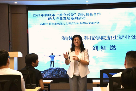 為進一步深化校企合作,助力產(chǎn)業(yè)發(fā)展,持續(xù)推動“益企興婁 活動,20247月,婁底市人力資源和社會保障局與湖南人文科 技學(xué)院聯(lián)合開辦了“婁底市首期求職能力實訓(xùn)營”。為切實提高實訓(xùn)營學(xué)員對行業(yè)企業(yè)的認(rèn)知,讓學(xué)員親身感受婁底企業(yè)的發(fā)展?fàn)?/span>況,提高學(xué)員的就業(yè)實踐能力,202487 日,由婁底市就業(yè)服務(wù)中心、湖南人文科技學(xué)院招生就業(yè)處、婁底市企業(yè)聯(lián)合會、婁底市企業(yè)家協(xié)會聯(lián)合主辦,婁底市節(jié)能環(huán)保產(chǎn)業(yè)促進中心等企業(yè)承辦,在婁星產(chǎn)業(yè)開發(fā)區(qū)產(chǎn)學(xué)研中心舉辦“2024年婁底市高校畢業(yè) 生求職能力實訓(xùn)營與企業(yè)現(xiàn)場交流活動”。湖南人文科技學(xué)院招 生就業(yè)處處長劉紅燃,婁底市就業(yè)服務(wù)中心城鄉(xiāng)就業(yè)服務(wù)部部長聶瑞成帶隊參加。