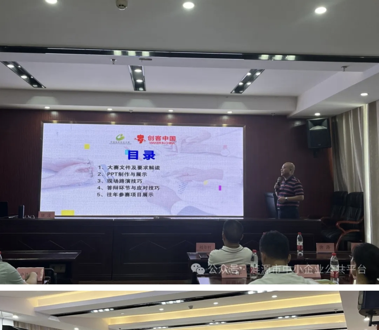 活動開始,漣源市中小企業(yè)服務(wù)中心主任先作了動員報告,隨后,湖南旺達(dá)集團(tuán)導(dǎo)師憑借深厚的比賽經(jīng)驗與知識儲備,對湖南省工業(yè)和信息化廳《關(guān)于舉行2024年“創(chuàng)客中國”湖南省中小微企業(yè)創(chuàng)新創(chuàng)業(yè)大賽的通知》進(jìn)行了深度解讀,并圍繞參賽條件、評分標(biāo)準(zhǔn)、賽前籌備、PPT的內(nèi)容制作和要點、現(xiàn)場展示與演講、答辯技巧等方面展開,為各參賽企業(yè)代表呈現(xiàn)了一場內(nèi)容詳實,干貨滿滿的知識盛宴。