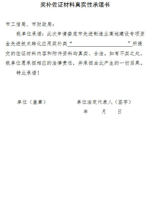 (三)其他要求。各縣市區(qū)須嚴(yán)格按照《婁底市先進(jìn)制造業(yè)高地建設(shè)專(zhuān)項(xiàng)資金管理辦法》(婁財(cái)企〔2023〕147號(hào))文件要求認(rèn)真組織項(xiàng)目申報(bào)工作,項(xiàng)目申報(bào)材料必須真實(shí)齊全。嚴(yán)禁違規(guī)推薦,弄虛作假,一旦查實(shí)有資料作假行為,不予受理其上報(bào)文件,并將影響到對(duì)轄區(qū)項(xiàng)目的支持,同時(shí)追究申報(bào)企業(yè)、審批人員的責(zé)任。