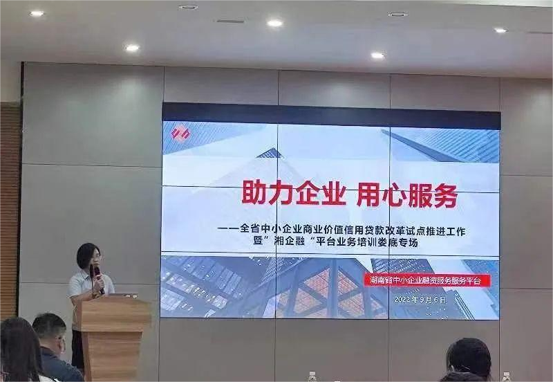 2022年9月6日下午,湖南省中小企業(yè)商業(yè)價(jià)值信用貸款改革暨“湘企融”平臺(tái)業(yè)務(wù)及融資服務(wù)能力提升培訓(xùn)活動(dòng)在婁底經(jīng)開(kāi)區(qū)創(chuàng)新大廈六樓舉行。此次活動(dòng)由湖南省工信廳指導(dǎo),省中小企業(yè)服務(wù)中心、市工信局主辦,湖南省中小企業(yè)融資股份有限公司承辦,市中小企業(yè)公共服務(wù)平臺(tái)協(xié)辦。