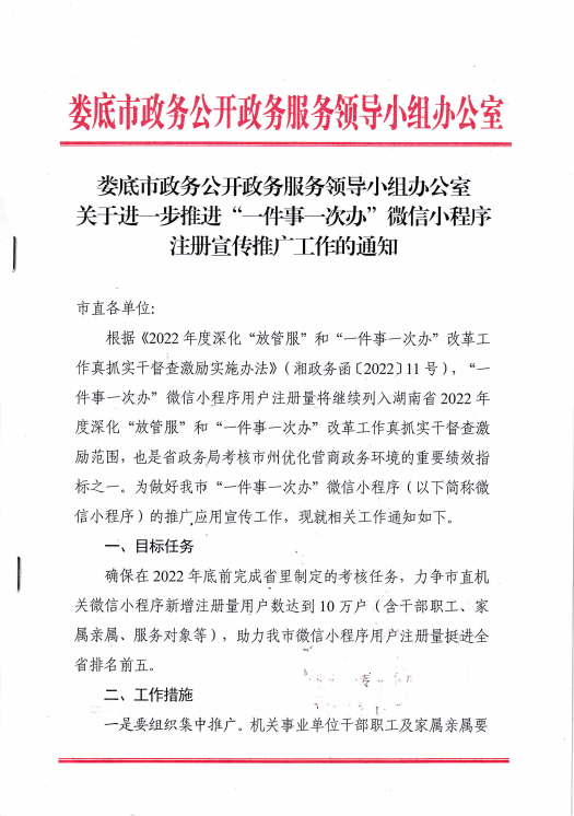 關于進一步推進“一件事一次辦”微信小程序注冊宣傳推廣工作的通知